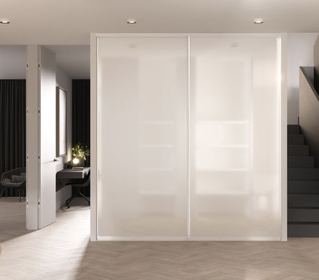 Vi anbefaler dette materialet, spesielt som fyll for garderobedører (skyve, brette eller Opal). Colorimo-glass er også perfekt som kledning på en kjøkkenvegg over benkeplaten.